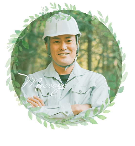 株式会社○○林業では、発注いただく方々、従事される方、すべての方から感謝していただける仕事を行うべく、最大限の努力を惜しまず業務にあたっております。
